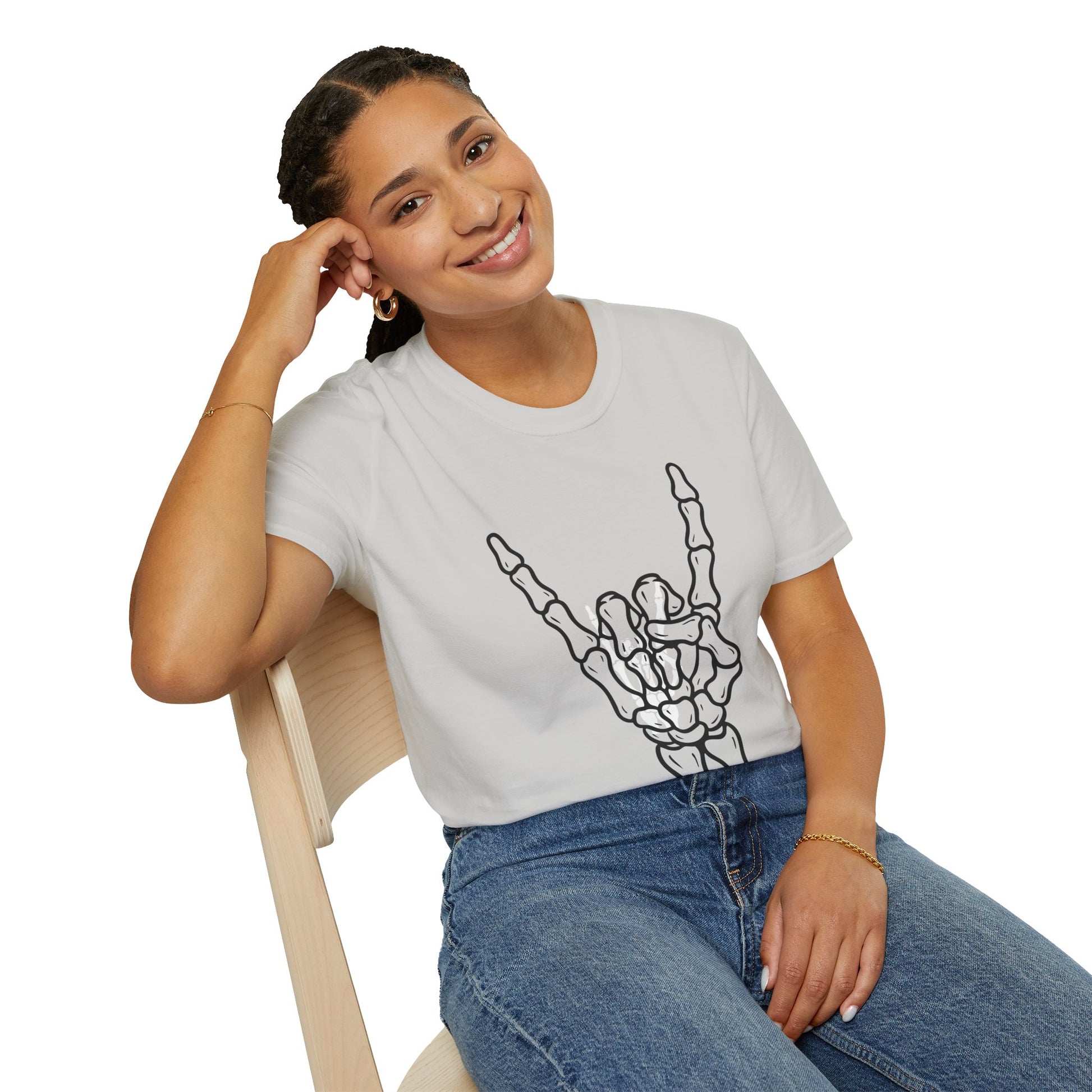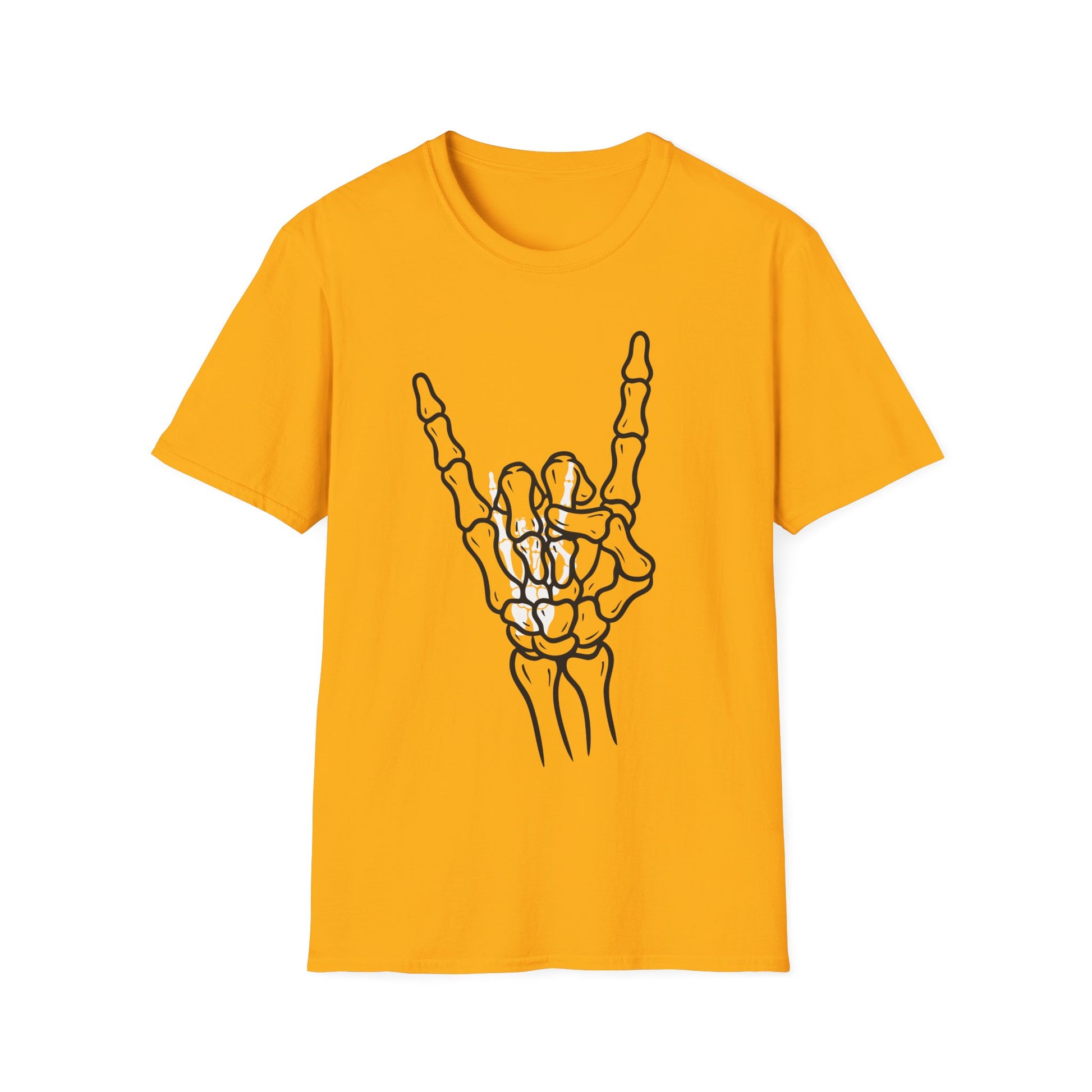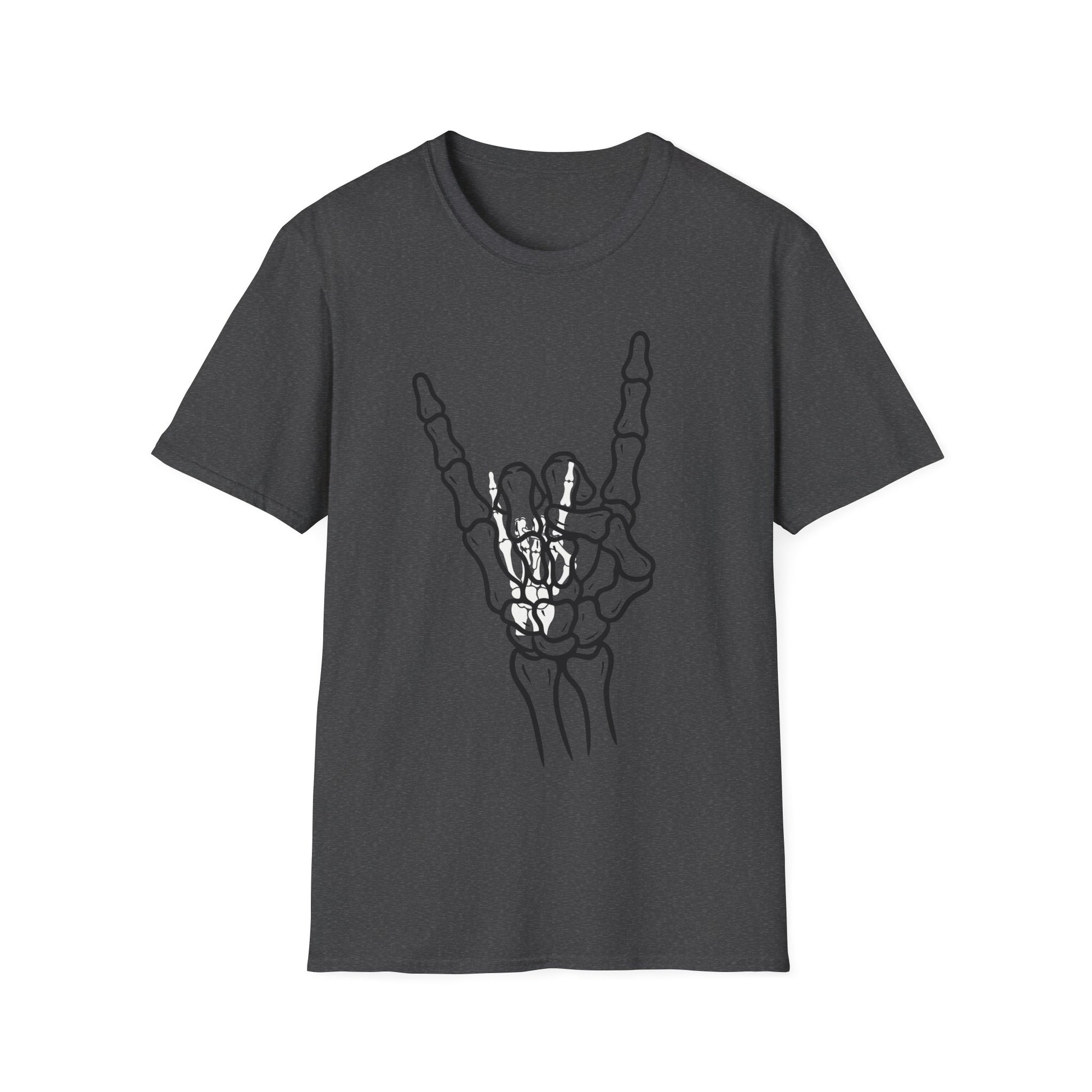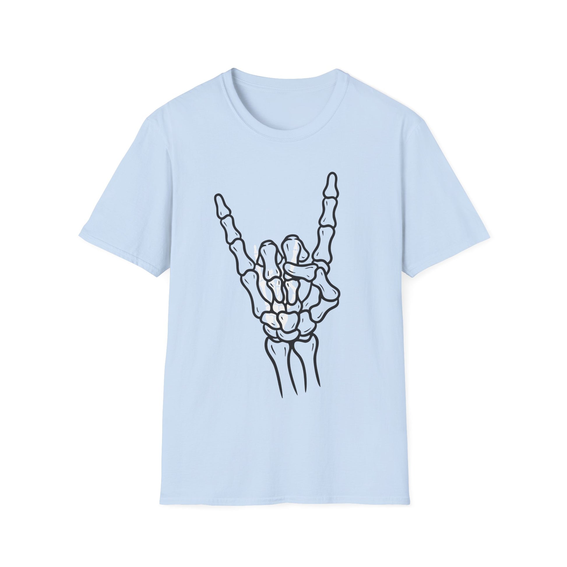 Featuring a striking skeleton hand throwing the iconic rock sign, this shirt delivers instant edge while staying comfortable enough for everyday wear. Whether you're hitting a concert, cruising the streets, or just making a statement, this tee keeps your vibe loud and unforgettable.