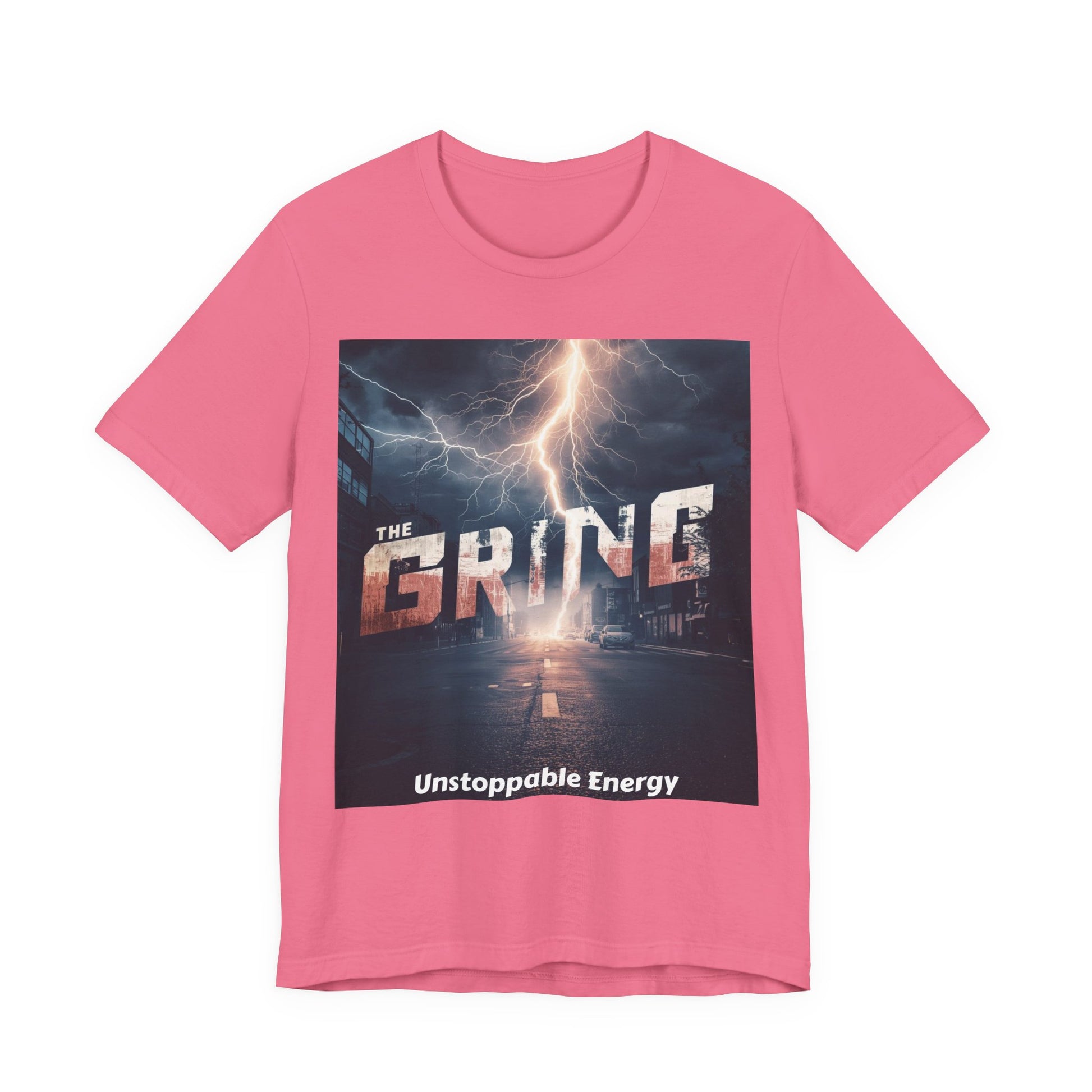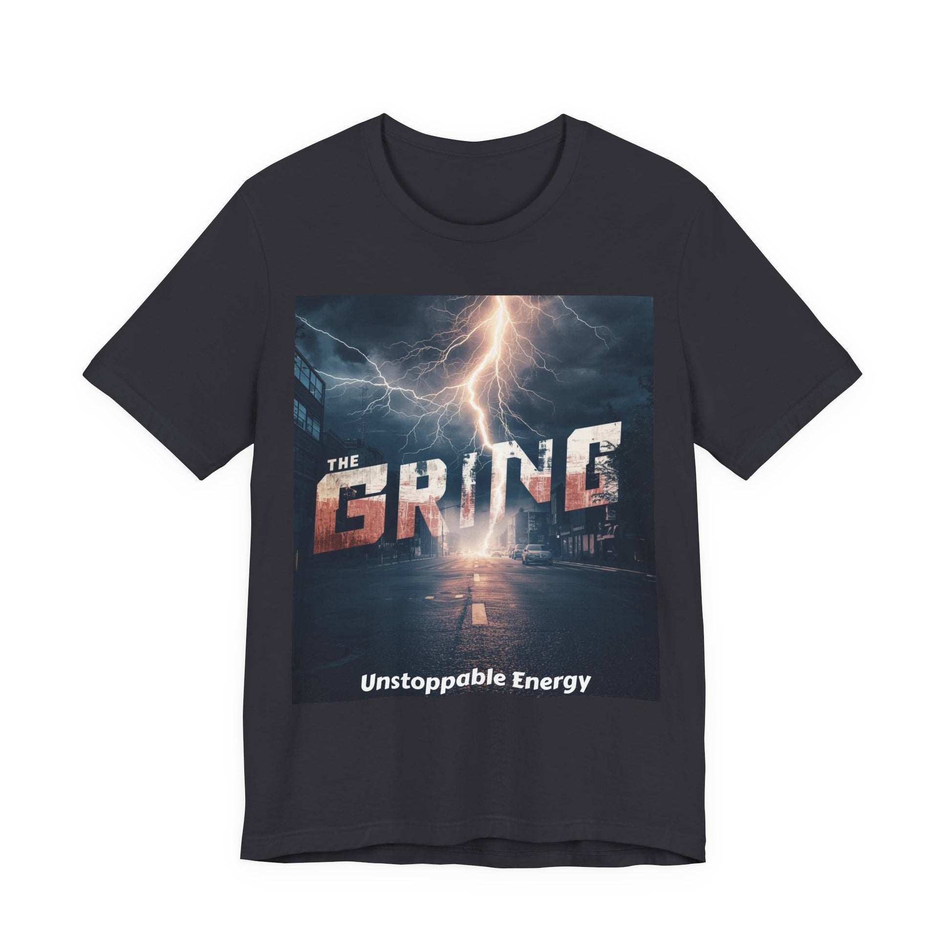 A lightweight, breathable jersey tee built for movement and everyday grit. The bold front artwork—an electric night scene with the word “GRIND” struck by lightning and the tagline “Unstoppable Energy”—gives this tee a charged, urban attitude. Cut in a retail crew-neck silhouette, it layers easily under jackets or stands alone on warm days. Thoughtfully constructed with side seams, shoulder tape and a ribbed knit collar to hold shape through repeat wear. Tear-away label and responsibly made fabric offer comfort that lasts.